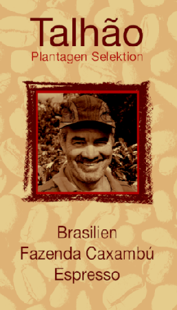 | Brasilien Caxambú Die traumhaft gelegene Plantage der Familie von Carmen Lucia Chaves de Brito in Tres Pontas, Sul de Minas bringt volle, aber weiche Kaffees hervor. Mit viel Herz, hohem sozialen Engagement und verantwortungsvollem Umgang mit den natürlichen Ressourcen werden neun verschiedene Arabica Varietäten auf Höhen zwischen 930 und 1150m ü.M. angebaut. Jedes Jahr fällt uns die Auswahl einer einzelnen Parzelle wieder schwer. Diesmal haben wir uns für die Lage „Figueira da Represa“ und die rote Arabica Icatú entschieden. Selten findet man einen solch ausgewogenen Espresso aus einer Herkunft! Er besticht durch eine zarte, angenehme Säure und Töne nach Haselnuss und Vanille. Unsere Mischung der anspruchsvollen Arabica S.795 Varietät mit 20% Perlbohnen-Robusta macht diesen Exoten zu einer würzigen, säurearmen Espressospezialität. - Ernte 2012 pulped natural